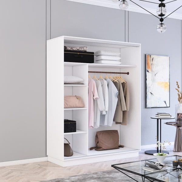 Сompartimentarea interioara este divizată în două zone: o zonă compusă din 5 spații de depozitare sub forma de raft. Aici pot încăpea cu lejeritate cutiile dumneavoastră de pantofi, puloverele, tricourile, prosoapele pe care le utilizați in mod frecvent. În plus, conține o zona superioara liberă, suficient de încăpătoare pentru a va permite să stocați în interiorul lor lenjeriile de pat, paturile, gentile sau valizele . În cea de-a doua zonă, este prezent dressingul, o zonă extrem de încăpătoare destinată depozitării organizate a hainelor pe umerașe: sacouri, geci, paltoane, pantaloni, cămăși, rochițe, etc.