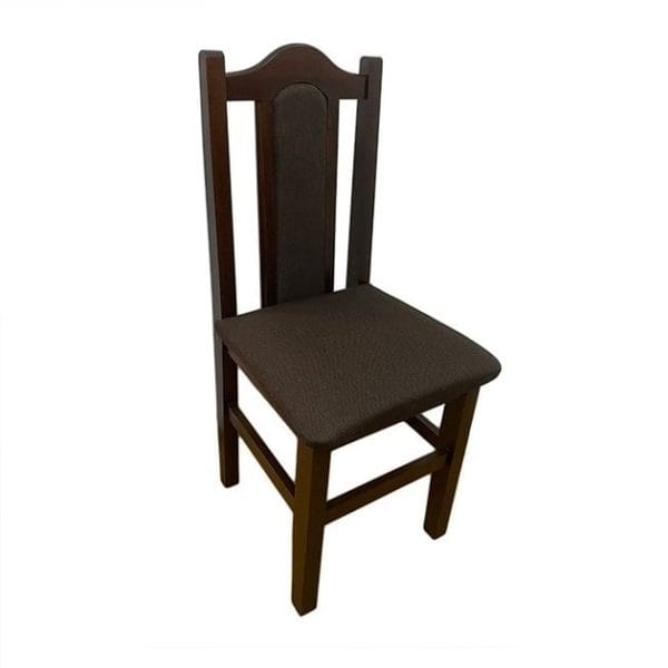 Scaune executate din lemn masiv de fag baituite in culoarea nuc/maro destinate ca mobilier pentru restaurante, pizzerii, dar si ca mobilier in locuintele dumneavoastra . Sezutul este tapitat cu material textil (stofa) si burete de 4 cm. Acestea contribuie in mod discret la decorul spatiului vostru, functionalitatea lor venind in completarea aspectului inedit.