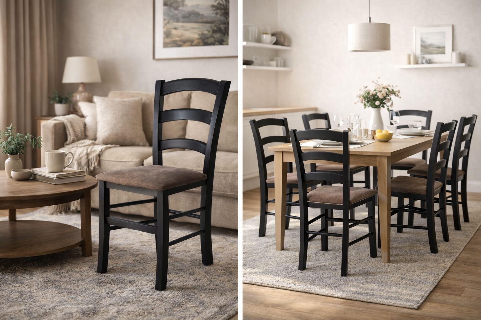 Scaun din lemn masiv de fag, Venetia VC-01 – finisaj wenge, tapitat